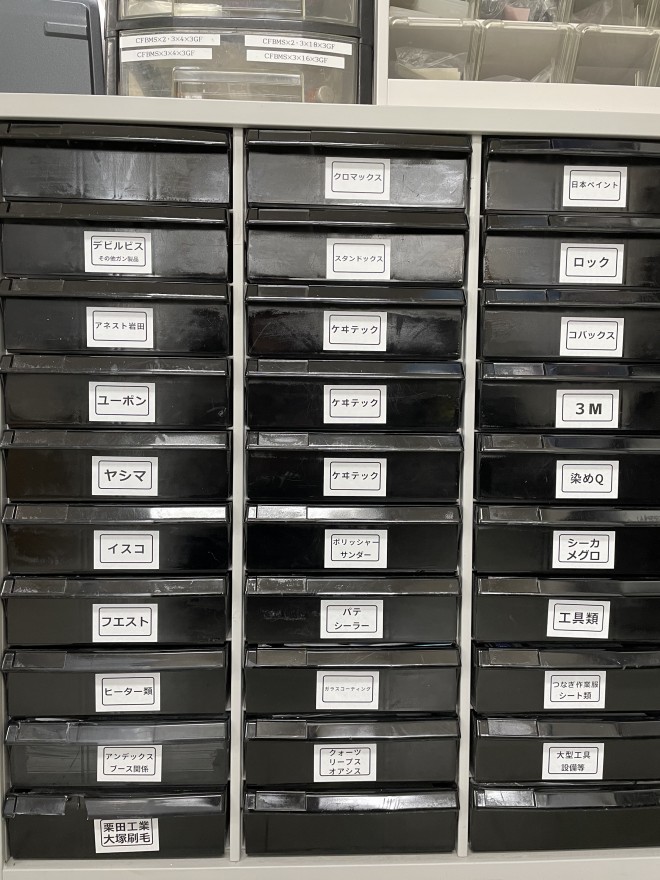 古い物は処分し、メーカー毎、商品毎に引き出しを分けてラベリングしました。
