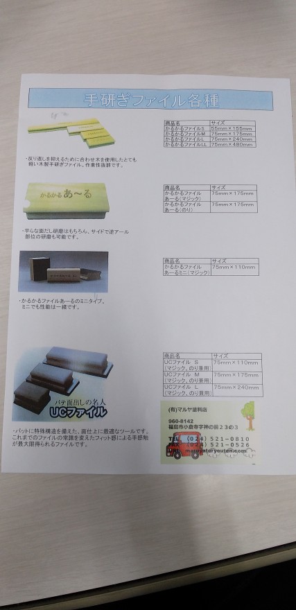 地味かもしれませんが下地づくりのための、サンディングファイルが載っていまして、軽量のファイルからロングファイルまだ有り使いがいがアルト思います~