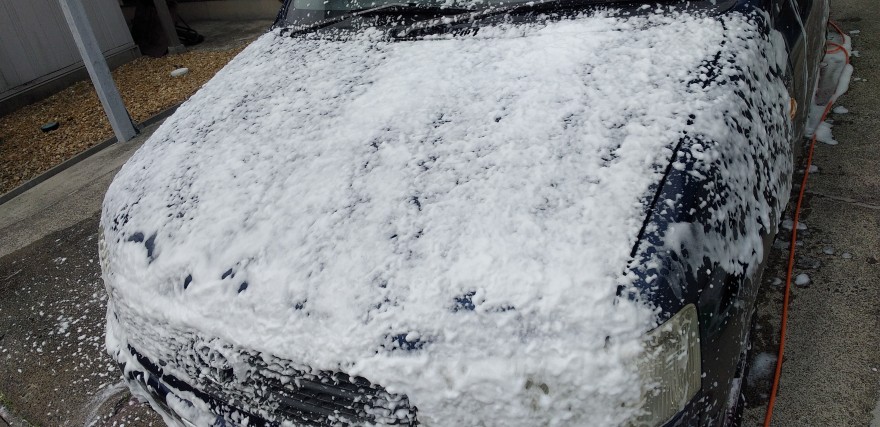 弊社おすすめアワアワガンで車のボディを泡で汚れを落とします😊