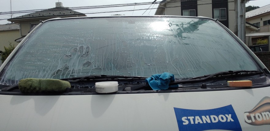 その前に、営業車のフロントガラスを綺麗にして出かけたいと思います。