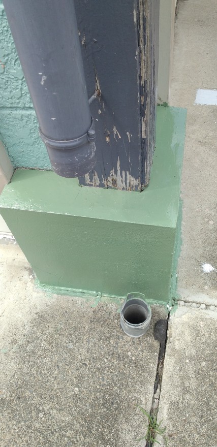 今日は先週に会社の外のペンキ塗りをするためにいろいろと洗剤を使用しながら洗いましたが、その前に外の雨樋の通路にある土台のコンクリートの色が気になってしまいたまたま会社の色と同系色のグリーン系の色があり慌ててマスキングをして、まず刷毛塗りをして仕上げてみました😆