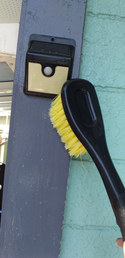 防犯灯も蜘蛛だらけだったので、まずはお掃除をしてからブラシでゴミと汚れを取り除いております~