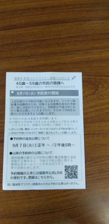 こんにちは、やっと自分の番のワクチン接種のご案内がきました~😅