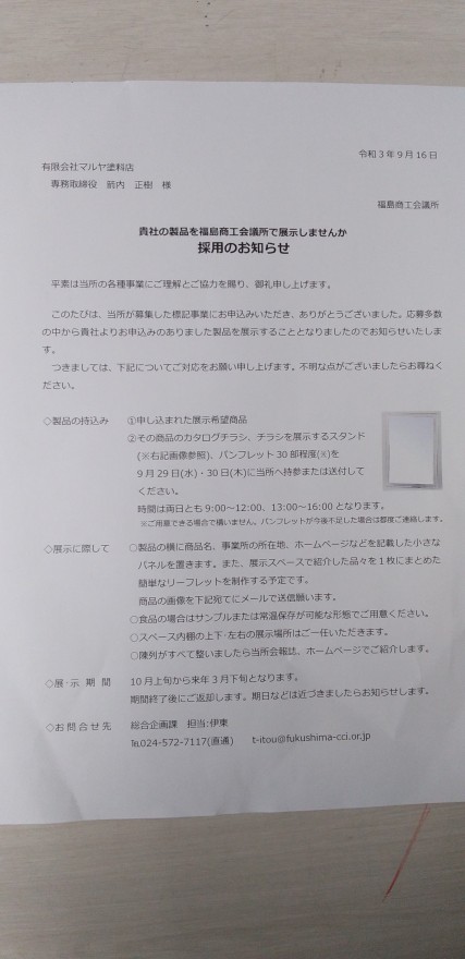 今日は弊社に福島商工会議様からご案内があり会社案内をPRできる募集を申請をして