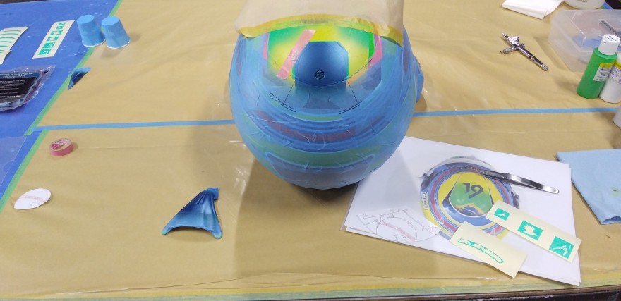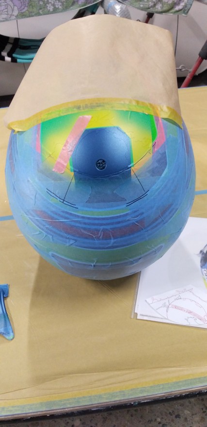 実はヘルメットの塗装は顔回りだけではなくヘルメットのてっぺんもデザイン塗装をするようでした(゚Д゚)
