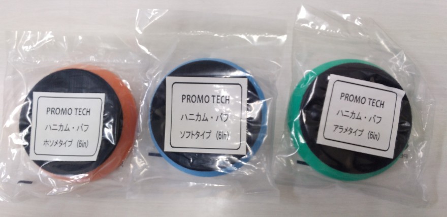 ハニカムバフが3種類、荒目タイプ、細目タイプ、ソフトタイプなどがあり低反発バフがスタンダードでノーウールバフでのシステムが画期的ナ商品です~😊