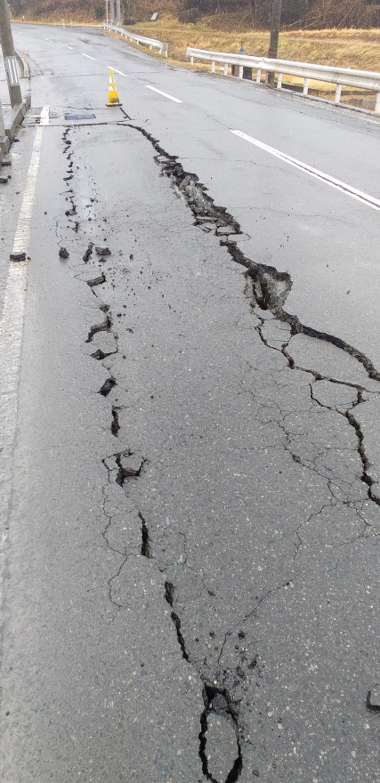 また、道路は、メインの国道や裏道など写真の所(陥没)が多く有り復旧まで時間がかかりそうでした⤵