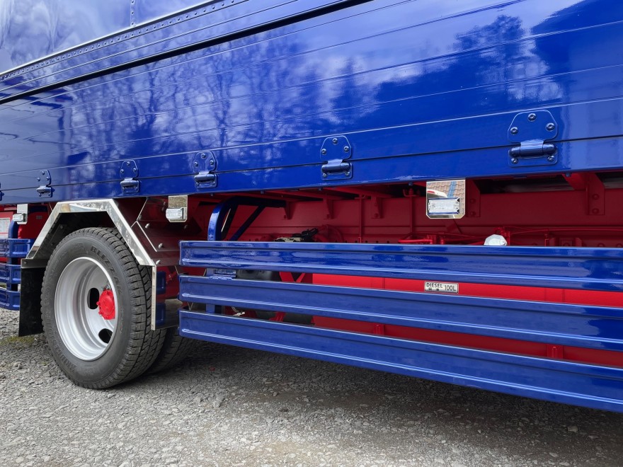 拘りは細部まで見え、リヤステップもブルーに。その上から縞鋼板が貼られてます。