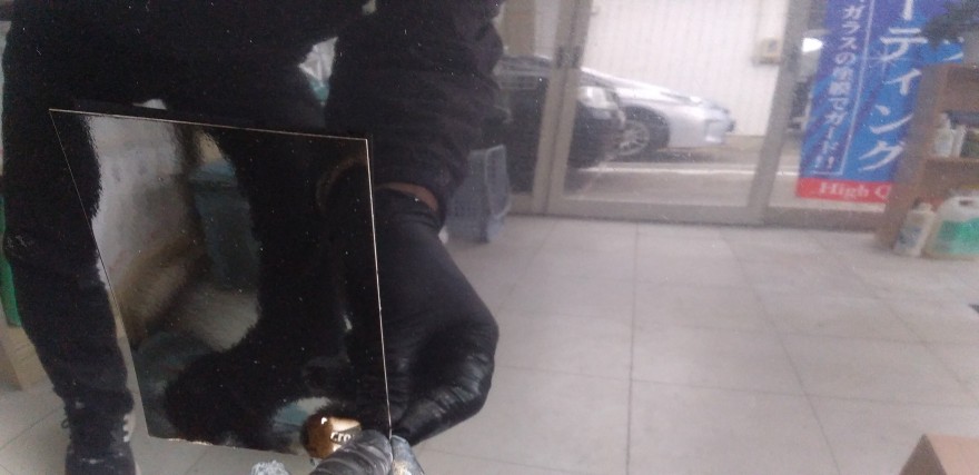 なんか自分の手と背景が写ってしまいましたが、トヨタ車の補修がありボンネットパネルを預かりました。
