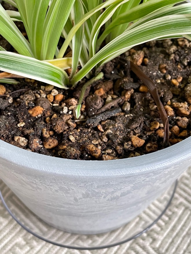 かなり大きく育ってきたオリズルランなんですが・・・ずっと芽が出ないなと思っていたら、多分、これって芽ですよね✨