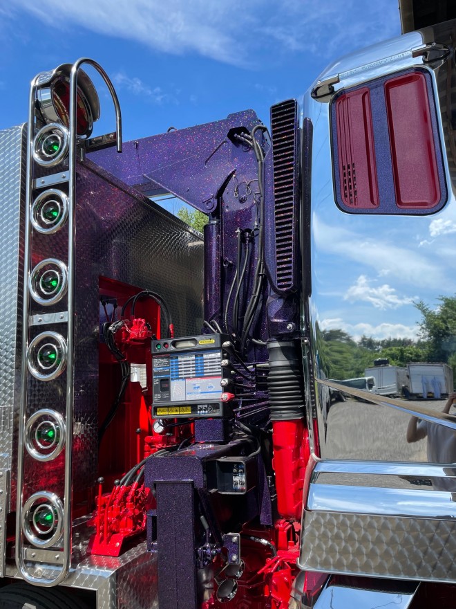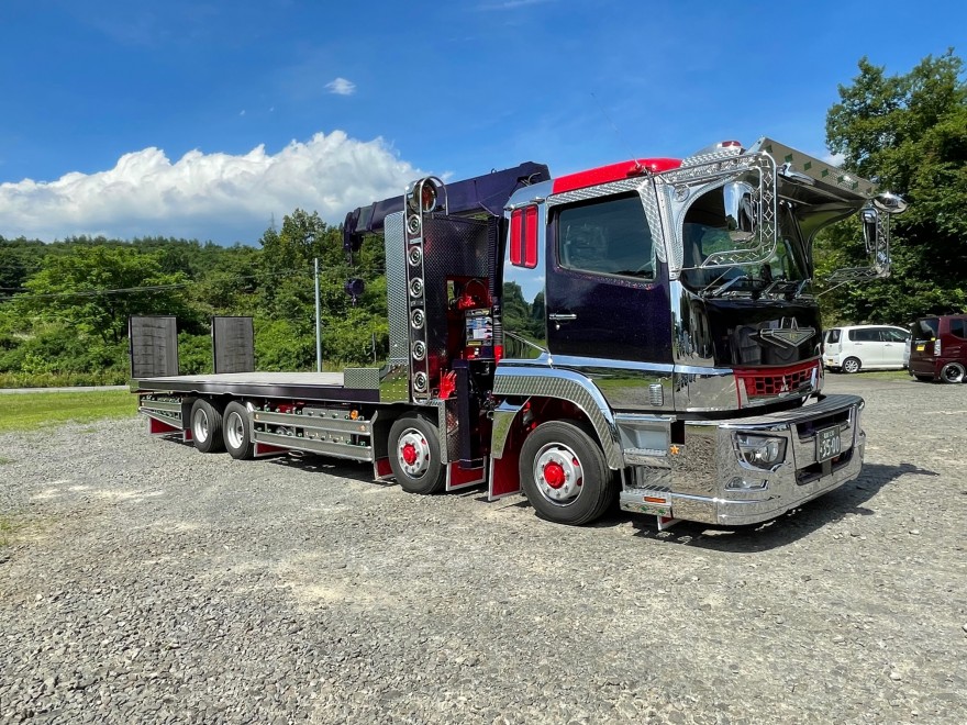 さてさて今日はこだわりのラメ塗装をご紹介します。(有)エスエムケイ様で施工された(有)おおたて様のトラックです。全体の感じはこんな感じです