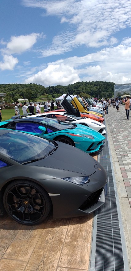 第二回目となる今回は、ランボルギーニ・オーナーの諸星伸一さん率いるチーム「諸星一家」をゲストに迎えて、ランボルギーニ、フェラーリ、など50台のスーパーカーが展示しておりました!