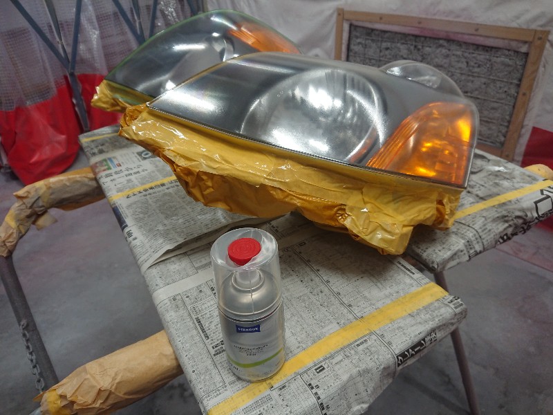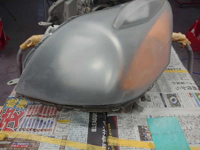 新年明けましておめでとうございます(m_m)とうとう良い年があけました。今日はまだお休みな所もありますが、新年そうそう場所とモニターパーツを提供していただける工場様がありモニターデモをさせていただきました(^^)v(^^)v今回は去年と引き続き、アクサルタのスタンドックスブランドのヘットライトリペアキットを使用してヘットライトが痛んだ、(クリヤー層)のリペアをいたしました。かなり表面が痛んでおり艶がない状態でした