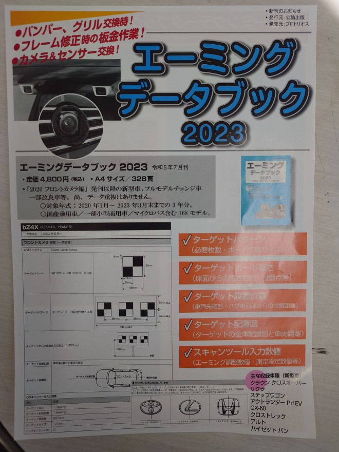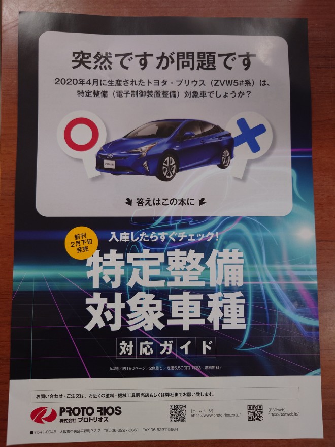 また、(株)プロトリオス様では、2024年2月発売の特定整備対象車種(対応ガイド)が発行されますので、困った際にはこちらを見て対応すれば、お仕事がスムーズになると思います😀