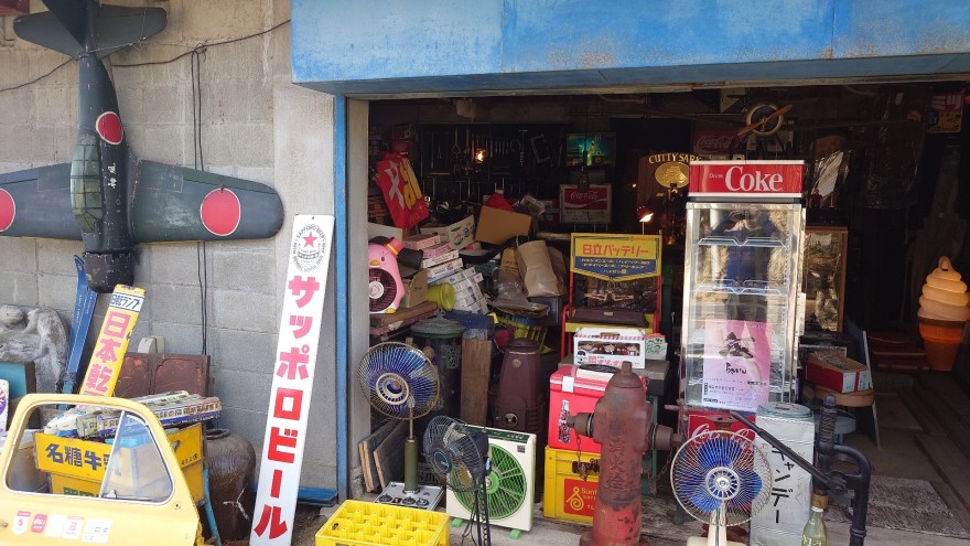 骨董品を営みながら、旧自動車販売をしながら商売をいとなんでいるお店でした!