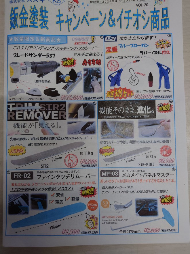 今日もお疲れ様です。今期も鈑金塗装キャンペーン&イチオシ商品が、やって参りました~