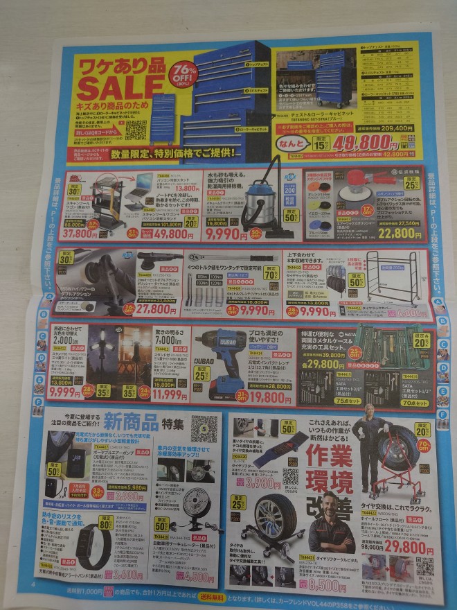 とにかく、大幅値引き品が盛り沢山でございます~整備、洗車商品など、気になる工具も盛り