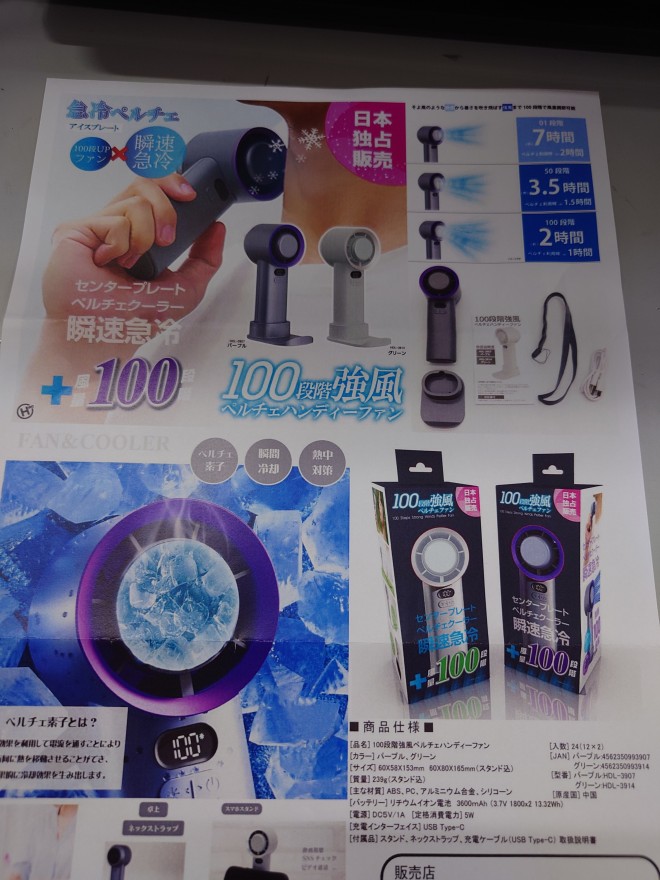100段階upファンによる瞬速急冷~01段階では、7時間、50段階では、3.5時間、100段階では、2時間と連続可能時間を選べるモードとなっております😄😄