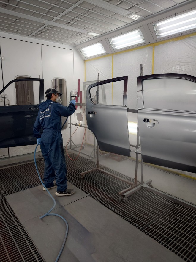 また、ブロック塗装でもホンダ車、トヨタ車の定番カラーのシルバーカラーをスプレーをしてもらい、前回のスプレーができてるかを確認をし、色が染まっているか?