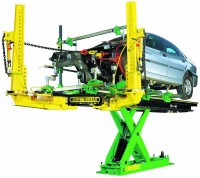 修正機や溶接機など、各種板金機器を取り扱っているスピーディさんの板金機器をお取扱しています。ご希望により操作方法についての研修なども承ります。写真はフレーム修正機「スーパーロタックス」。